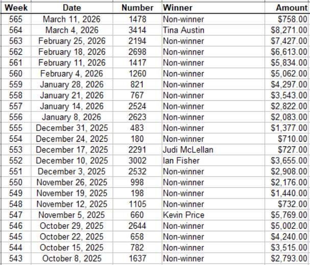 LAST WINNERS FOR GOLD MINE IN 2018
